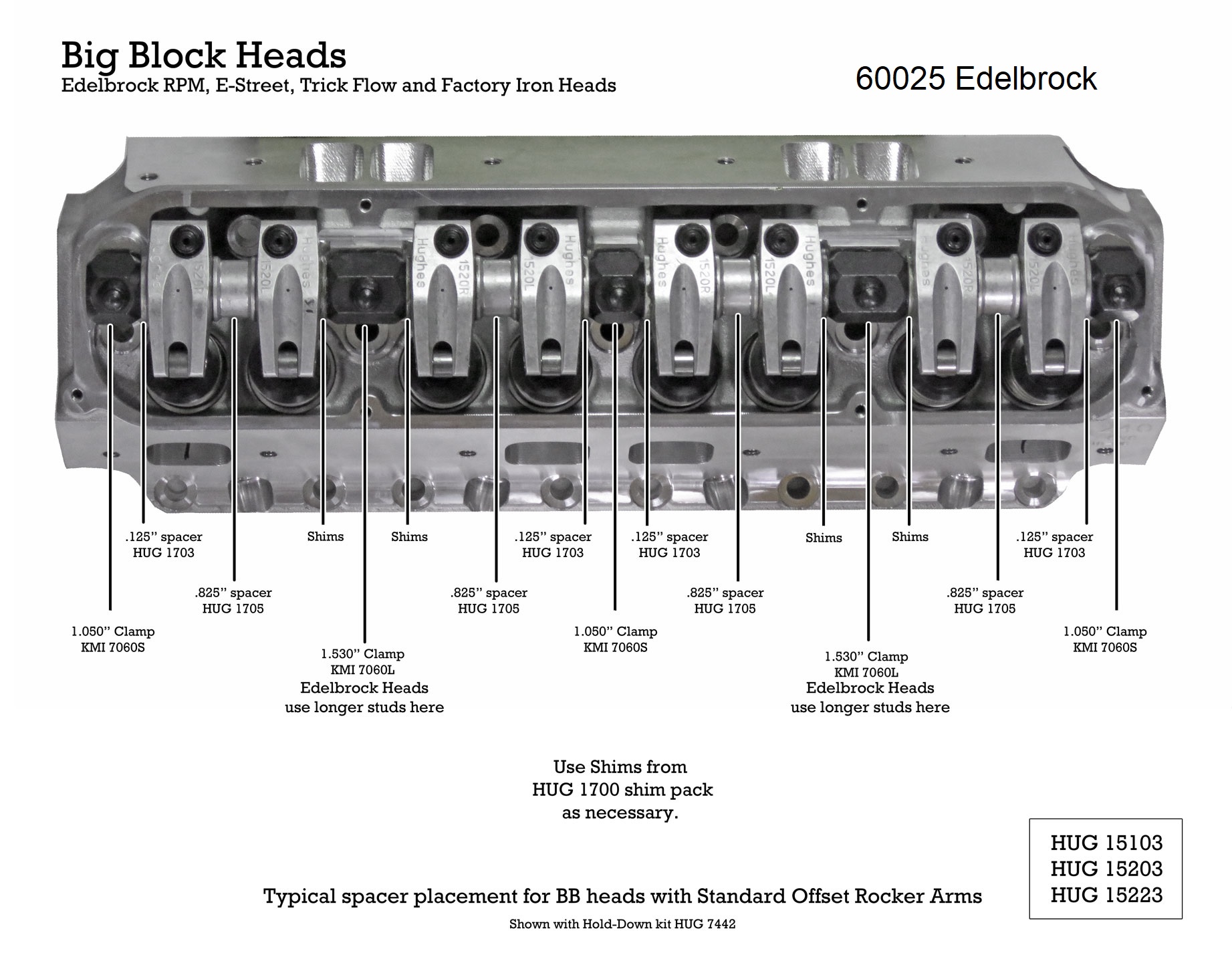 HUG 15103 PREM BB 1.5 RKR KT W/ SHFTS & HLDWNS CNC'D ALUM ROCKER SET INCLUDES SPACERS, SHIMS & GROOVED SHAFTS $1086.92